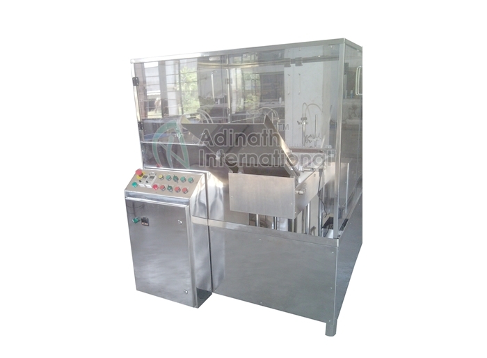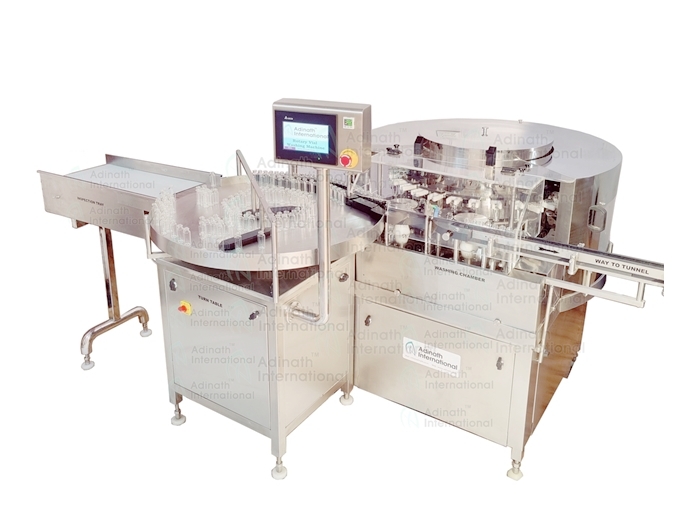 The machine comprises wire mesh conveyor on which ‘to be cleaned’ ampoules are properly fed. These ampoules are then transported from the in-feed worm for the washing process. Now the ampoules are washed using a water jet and dried using an air jet. A set of spray nozzles is fitted on conveyor for water jet. Besides, a set of knife blocks are provisioned on each conveyor for air-jet. These knives are used for the purpose of spraying air. Once the washing and drying process is over, the ampoules are forwarded to the outfeed collection tray. Ampoule external washer is also facilitated with a special arrangement to ensure proper drying of each ampoule from the bottom side.